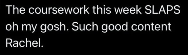 “This program helps women hold space for themselves, understand themselves, and understand the world around them. Rachel’s course helped me so much more than therapy did. I feel more grounded and I’ve been given a toolbox that allows me to feel more connected than I have before. This is not a regular course — it’s a life practice and I’ll be able to use this for years to come.”
